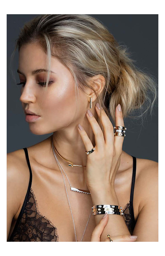 Gold Philosophy 飾品最重要的美學核心,就是將珍珠的優雅與蘇聯鑽的奢華以及金屬的尖銳強烈並存,最終激盪出簡約卻也活潑的飾品情感。