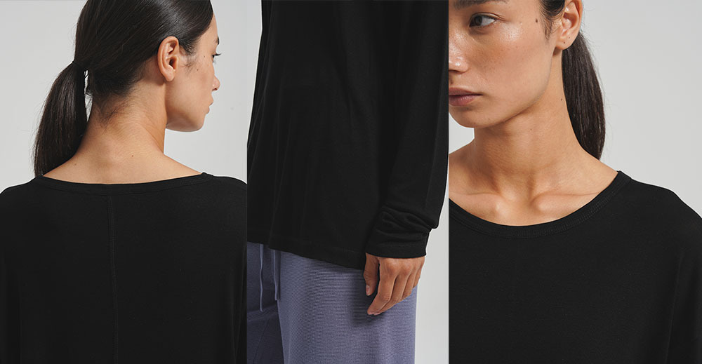 這款愛好極簡風格必Buy的親膚之觸長袖T,兼具柔糯的鬆弛感與不易變形的挺闊度,以及顯瘦的垂墜修身版型。