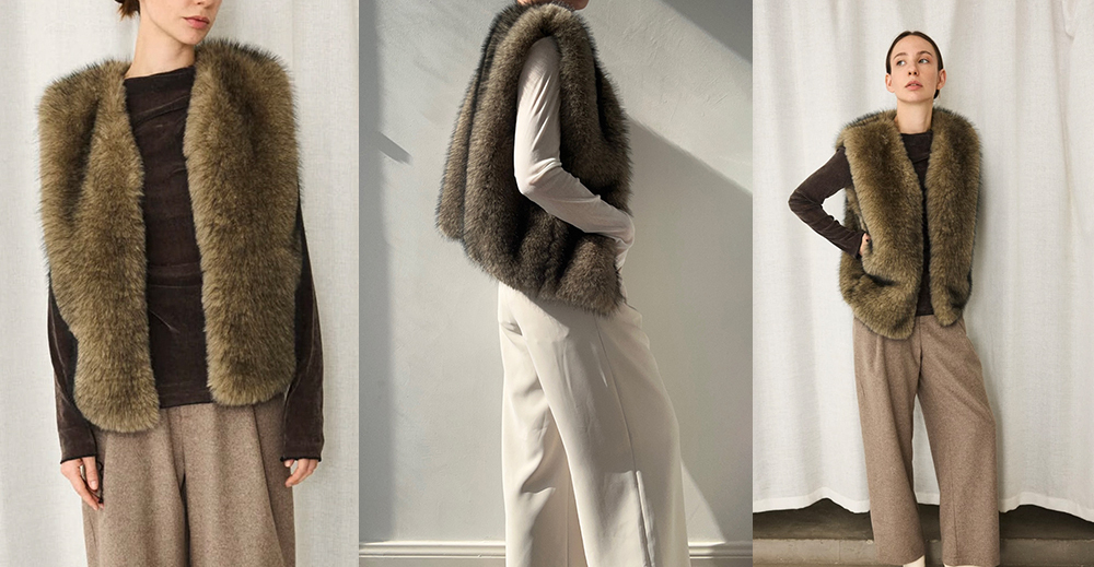 輕盈極簡0壓感軟糯環保皮草背心 - 灰棕色