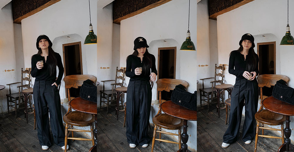 顯瘦的完美垂墜度與立體空氣感/ 修飾腿部線條的廓形線條與提臀設計細節/